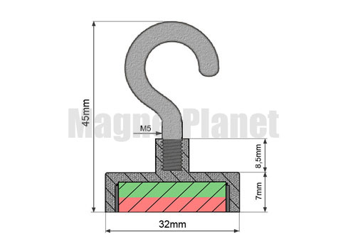 H-32-7 - AdatlapNEODYM Mágnesek | Mágneses rögzitéstechnika | Mágnes kampók, horgok |