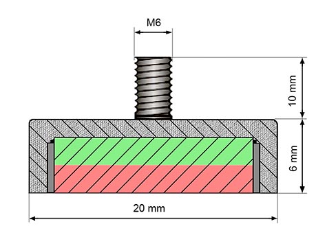 POT-G-20-6-Z - AdatlapNEODYM Mágnesek | Mágneses rögzitéstechnika | POT mágnesek menetes nyakkal |