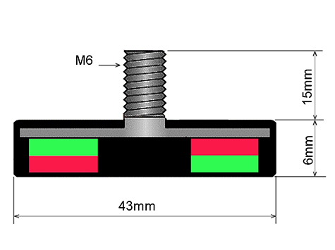 POT-S-G-43-6 - AdatlapNEODYM Mágnesek | Mágneses rögzitéstechnika | POT mágnesek gumibevonattal |